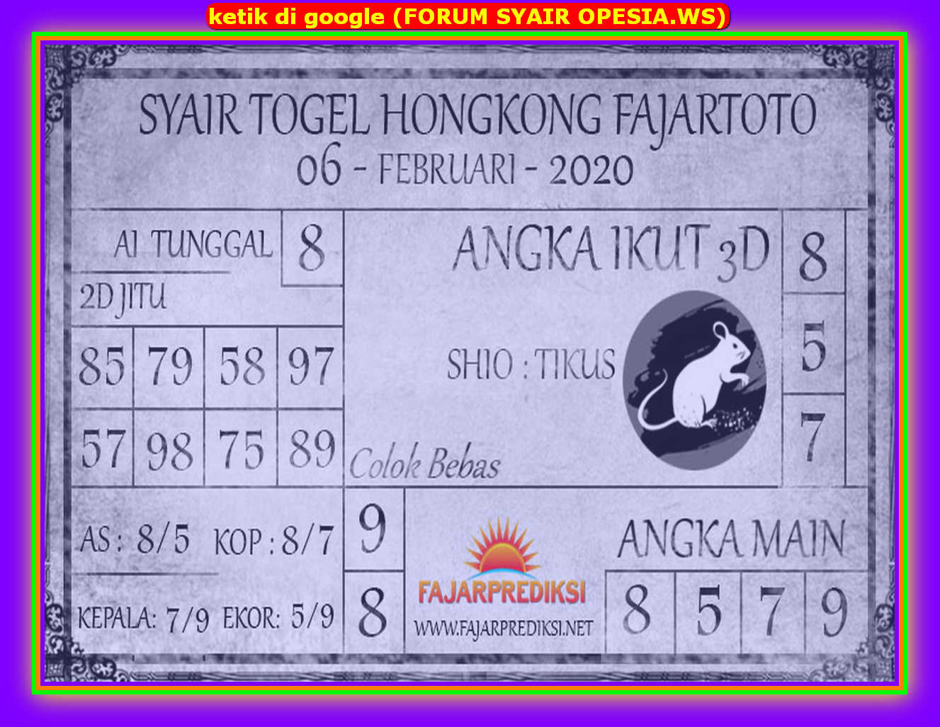 Forum Syair Hongkong malam hari ini hk 4 mei 2023, Adalah Kumpulan gambar kode syair hk lengkap, yang di buat untuk pengemar sahabat Forumsair.com. selamat datang sobat sekalian yang membutuhkan prediksi syair bergambar untuk di jadikan angka jitu pasangan hari ini. Ada sekitar 200 an gambar SYAIR hk yang saat ini sudah di terbitkan oleh. Forum Syair HK - Syair HK - Syair Hongkong Syair HK merupakan sebuah kode alam ataupun biasa dikenal sebagai gambar syair hk dengan erek-erek togel hongkong. Dimana nanti didalamnya akan dilengkapi prediksi togel hk 2D, 3D, 4D jadi harus sangat dimanfaatkan dengan baik oleh semua pemain.