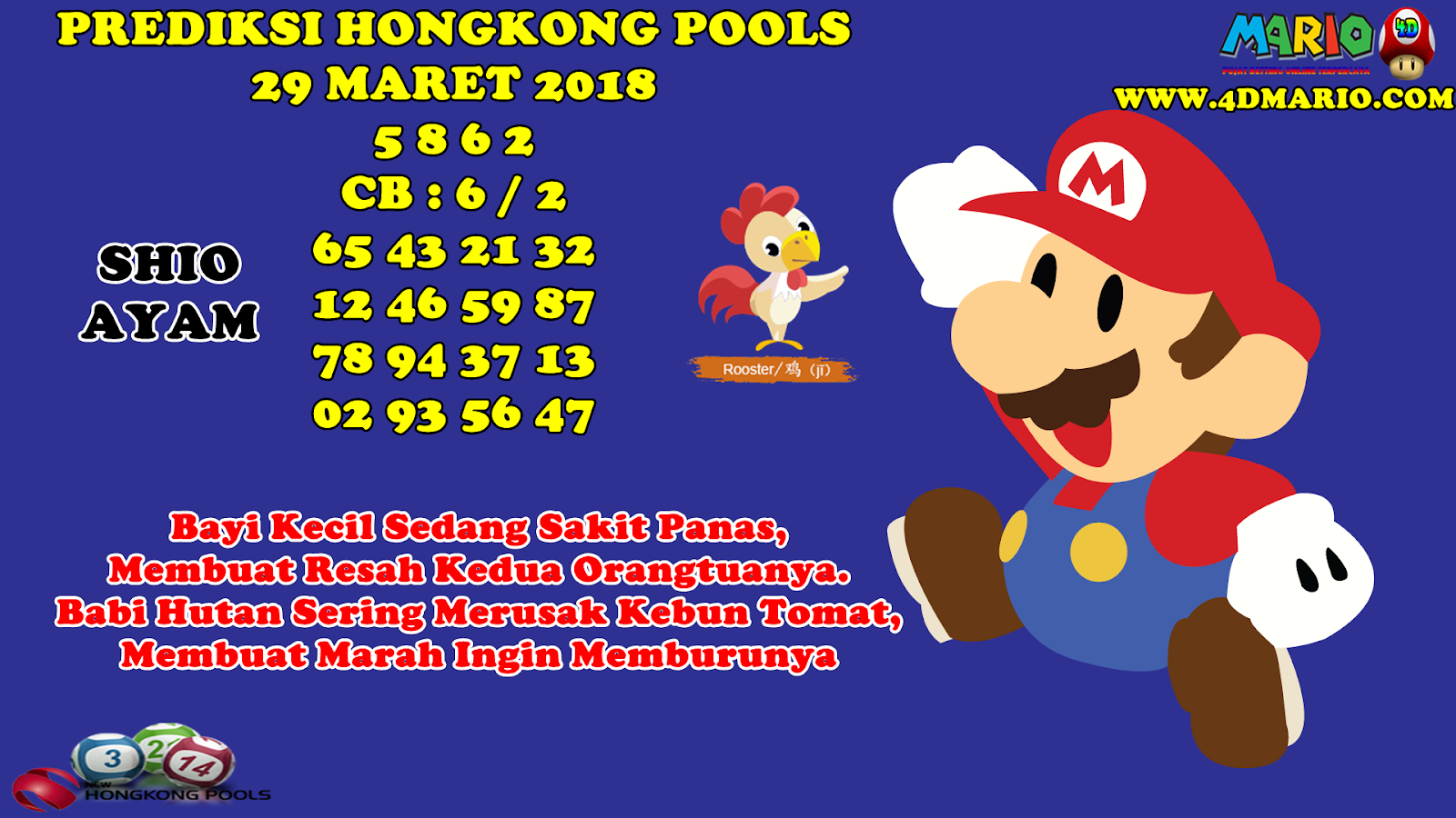 PREDIKSI TOGEL HONGKONG POOLS 29 MARET 2018 Mario 4D Situs Betting